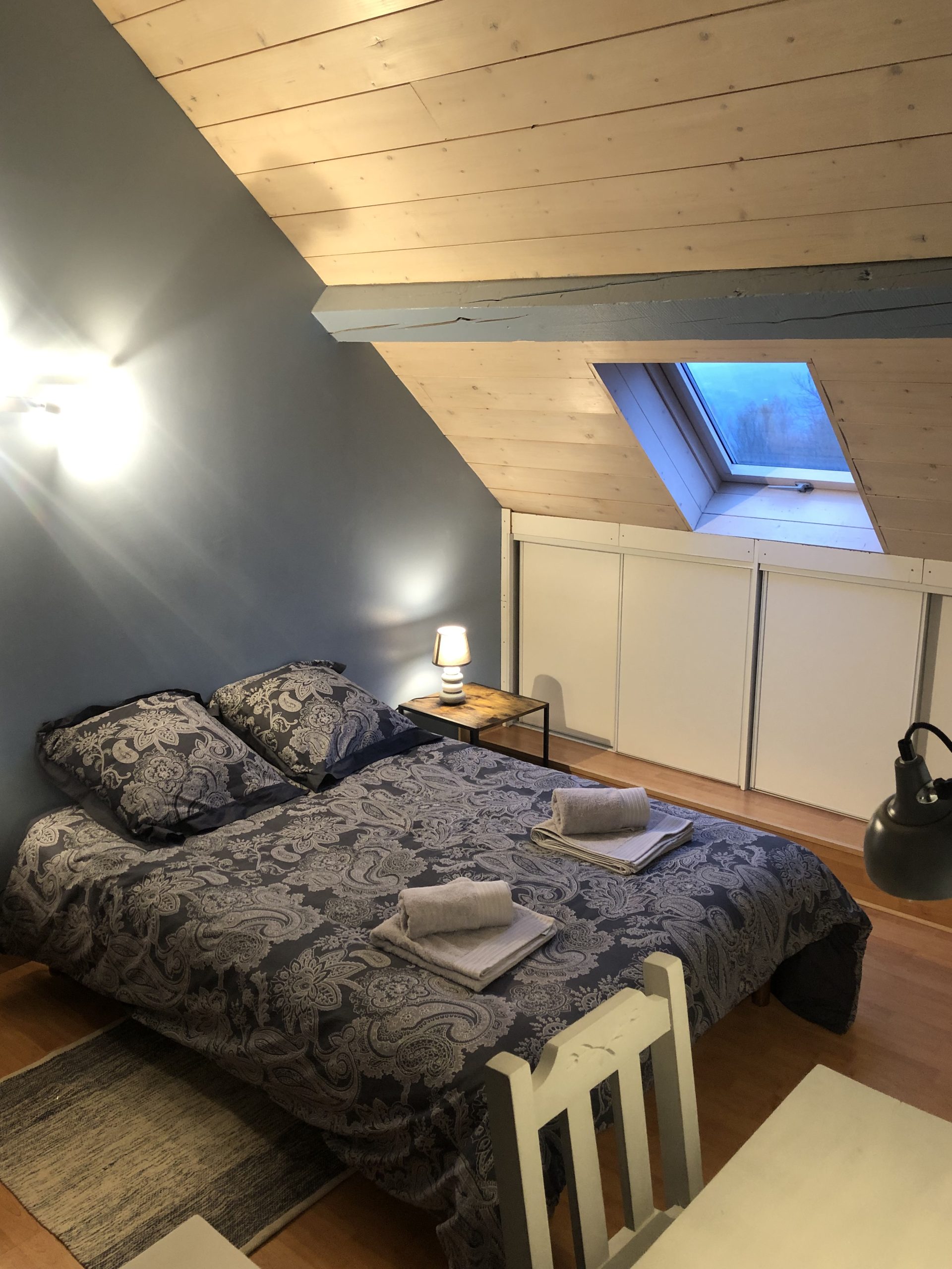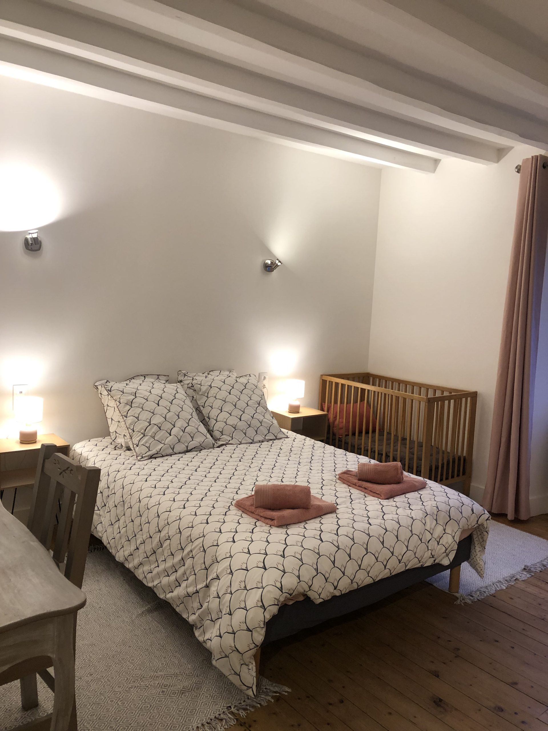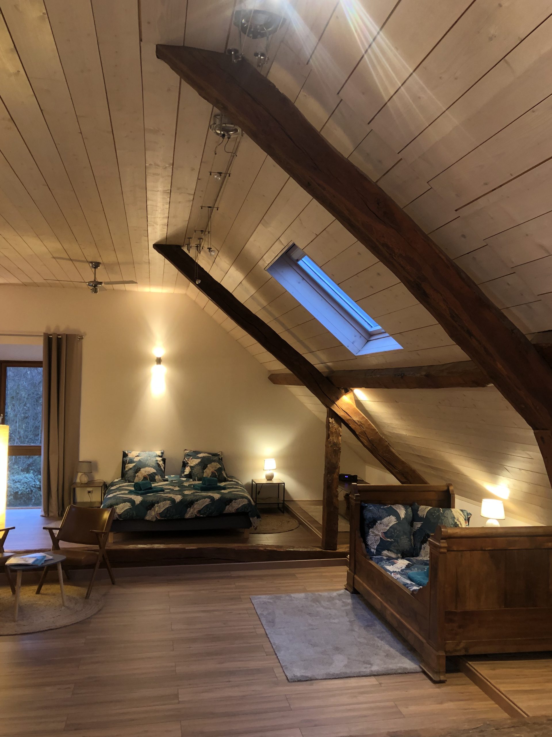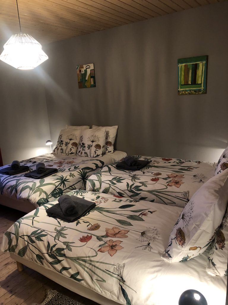 - une chambre familiale avec un lit de 140×190 et deux lits de 100×190,