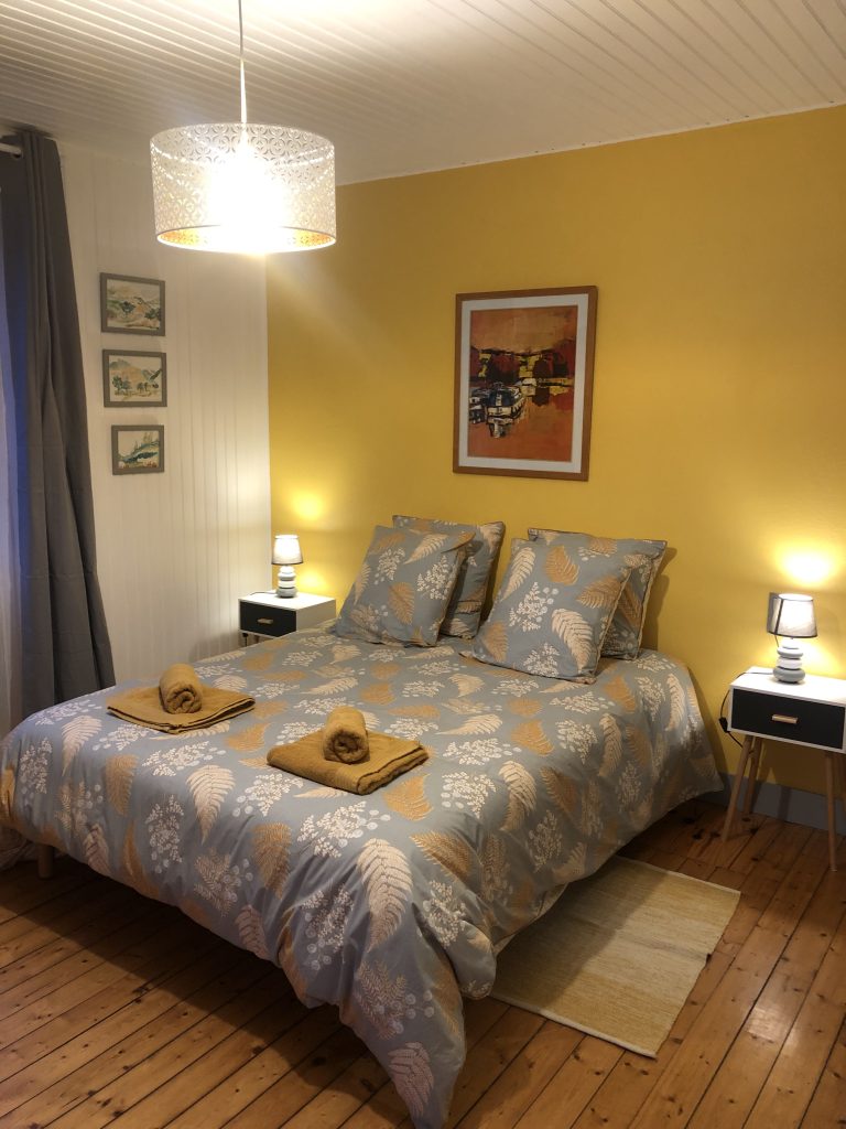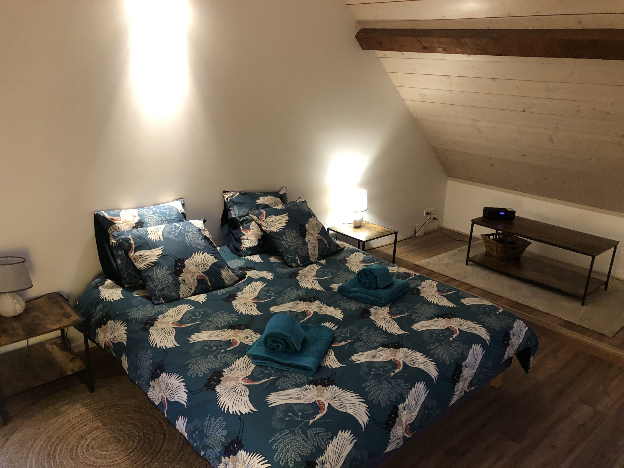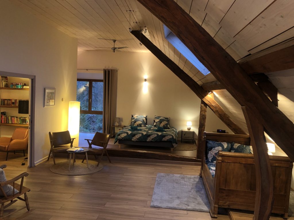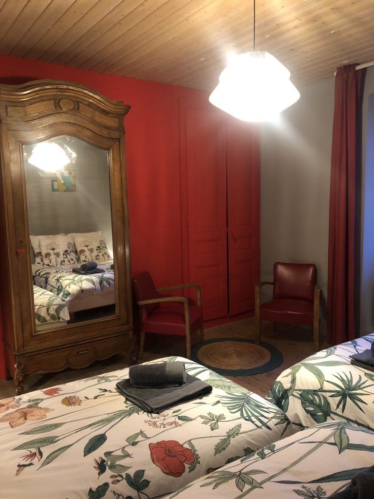 - une chambre familiale avec un lit de 140×190 et deux lits de 100×190,