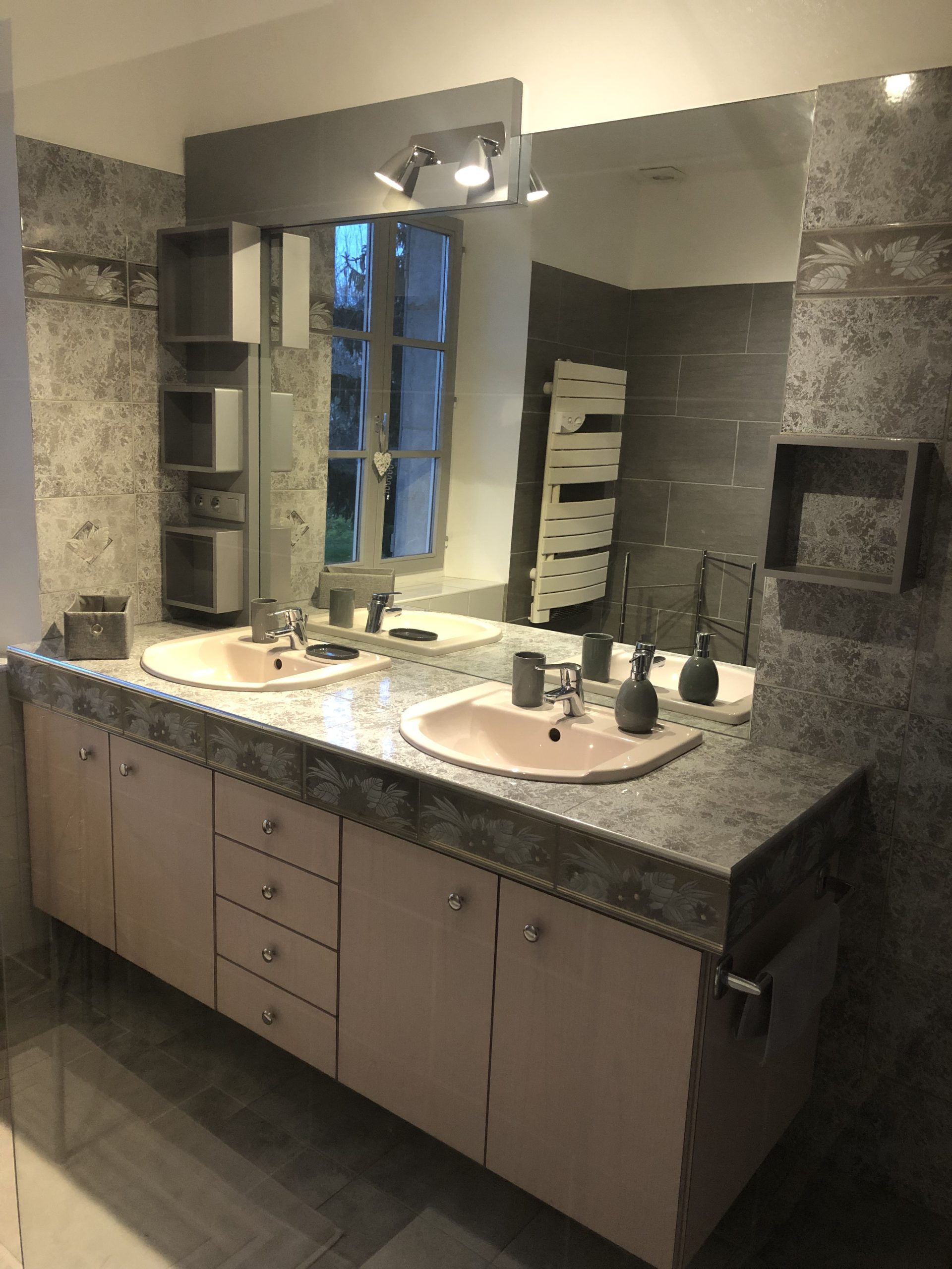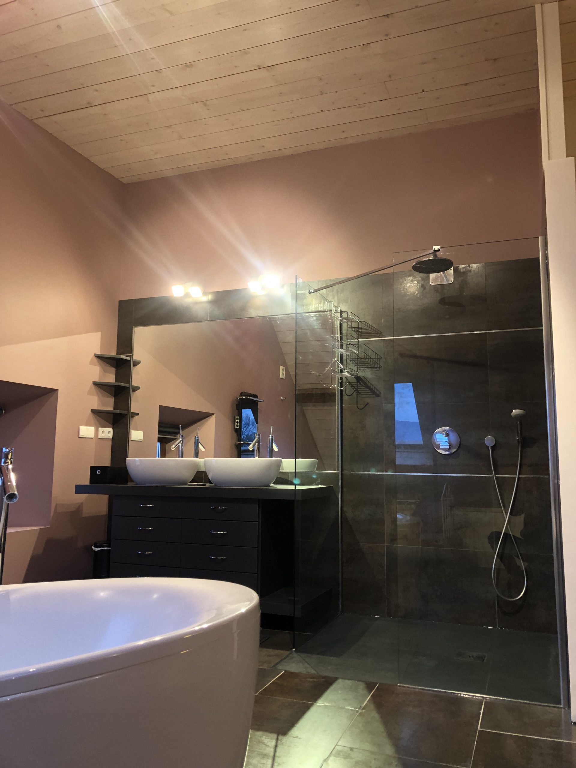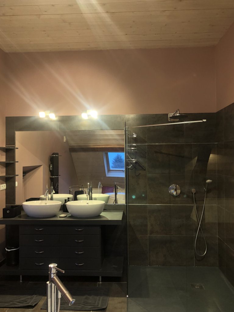 - une 2ème grande salle de bains avec douche, lavabos et rangements.