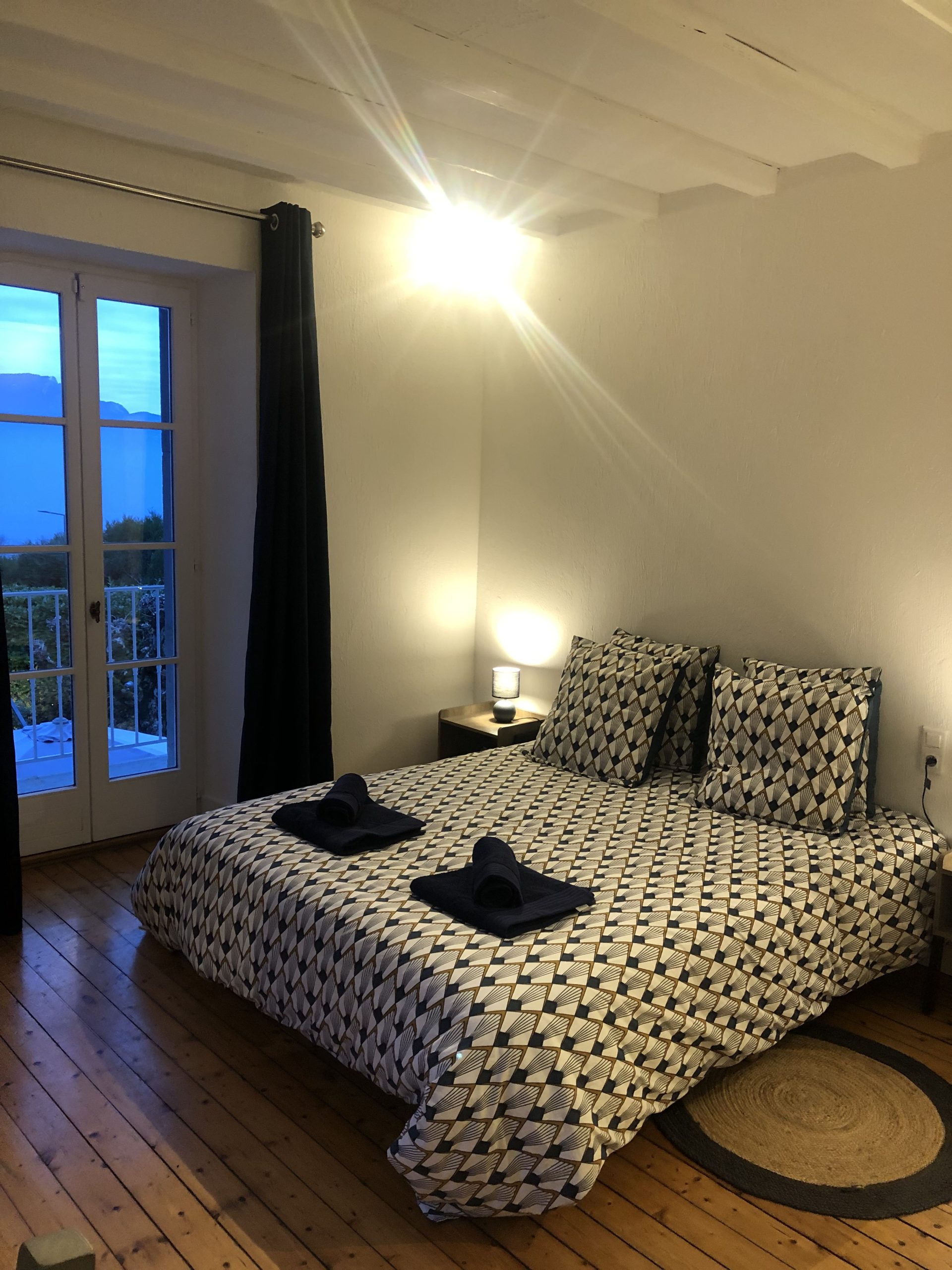 - vous disposerez de 4 grandes chambres avec lits doubles 160×190, dont deux avec balcon et vue lac,