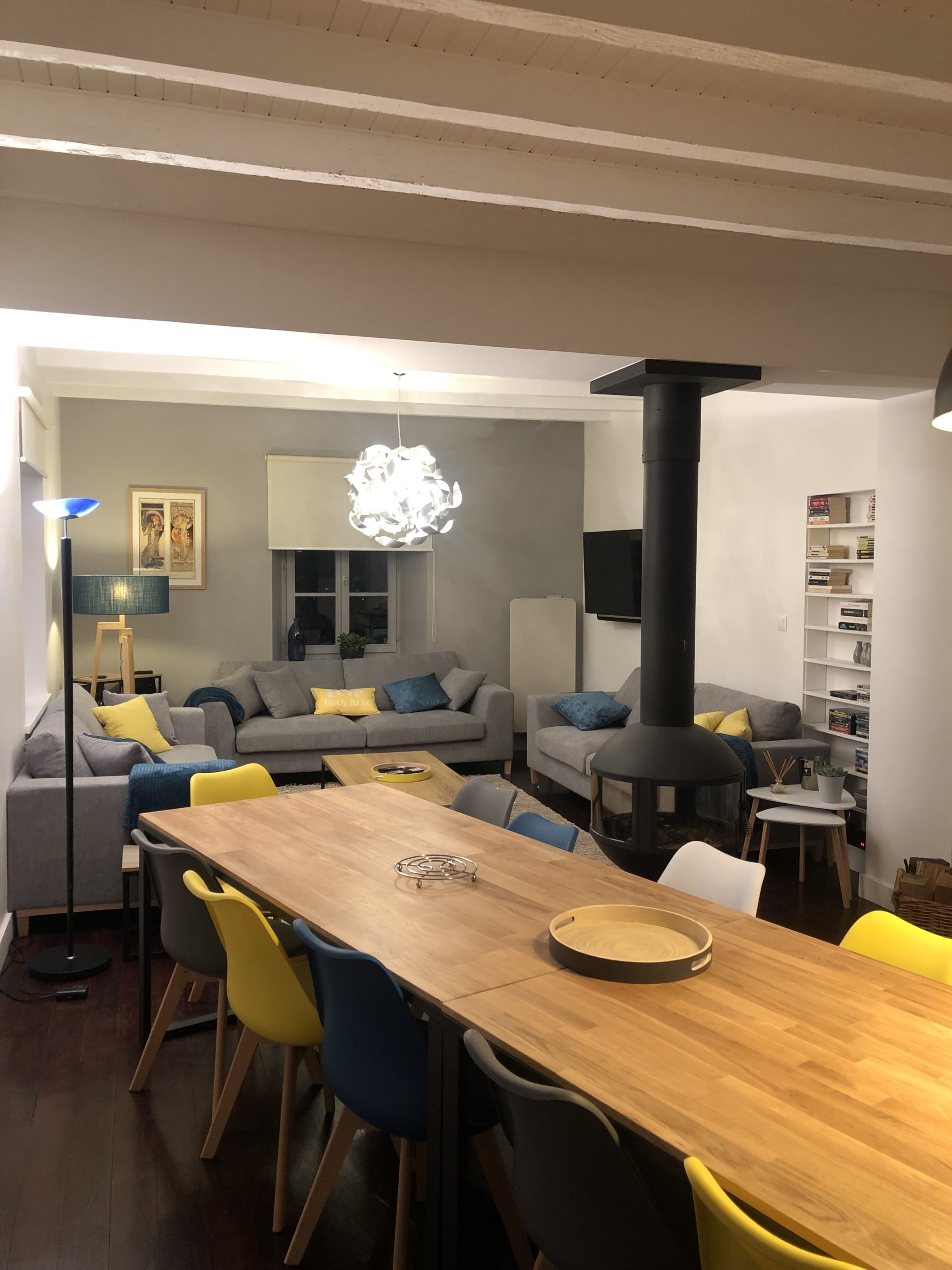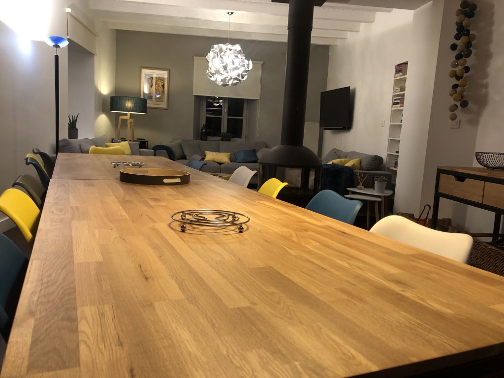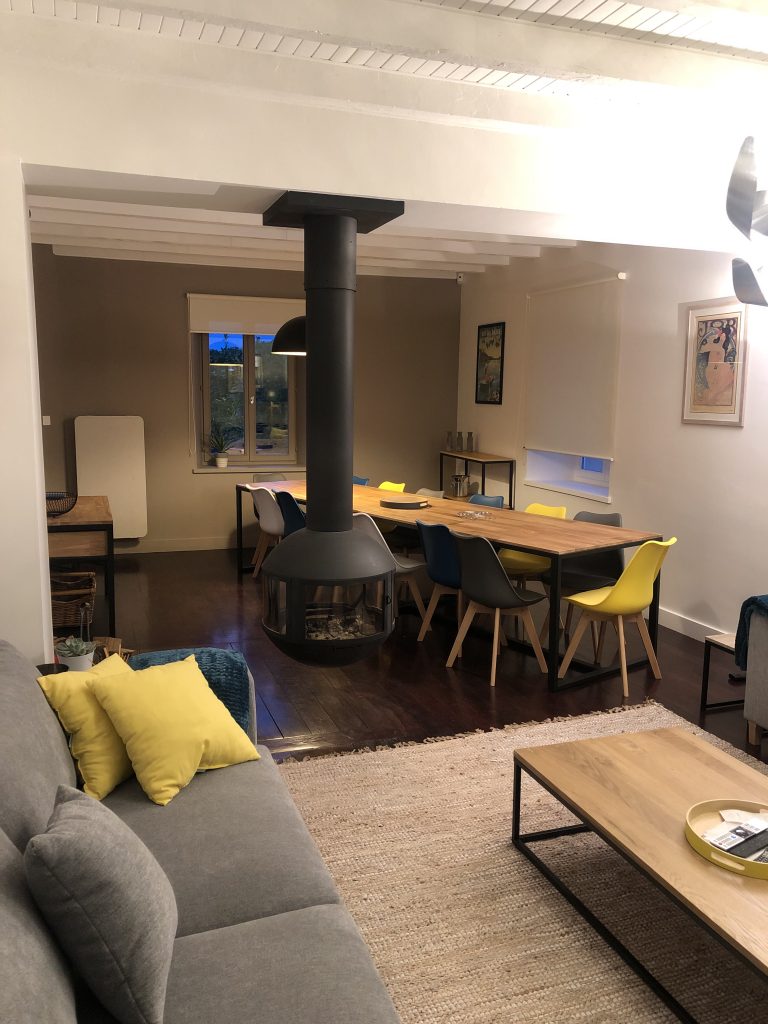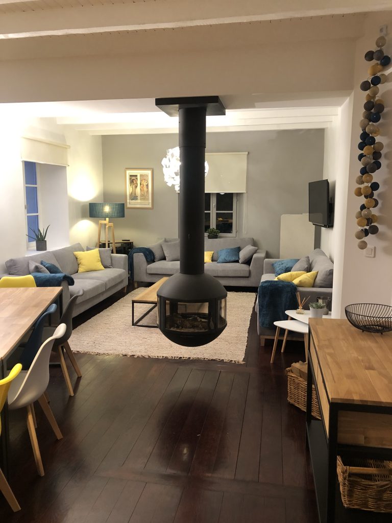 La grande pièce de vie est très agréable avec un espace salle à manger et un espace salon pourvu de trois canapés et d’une cheminée suspendue pour profiter des soirées d’hiver au coin du feu. Équipement TV et Hifi disponibles.
