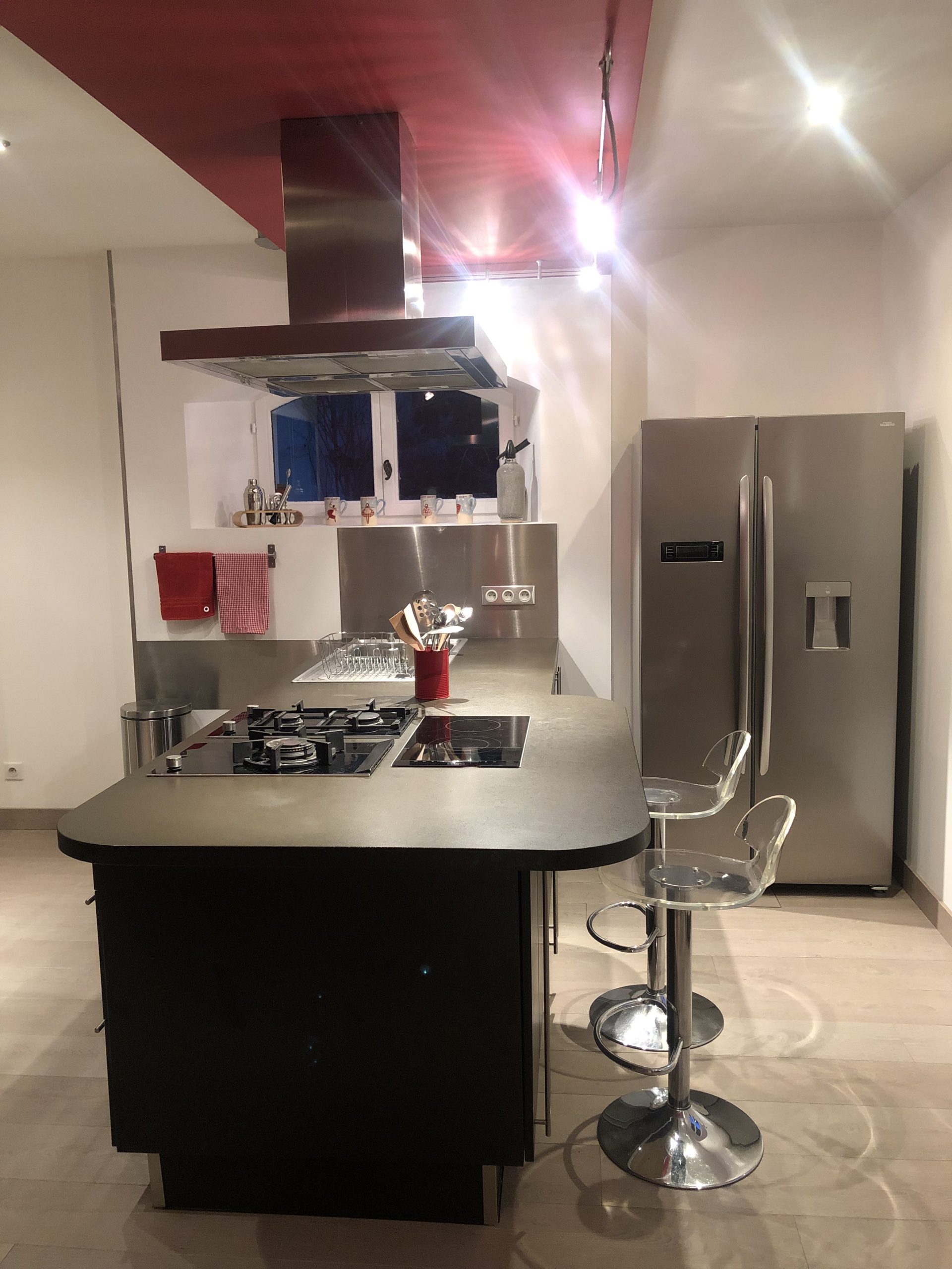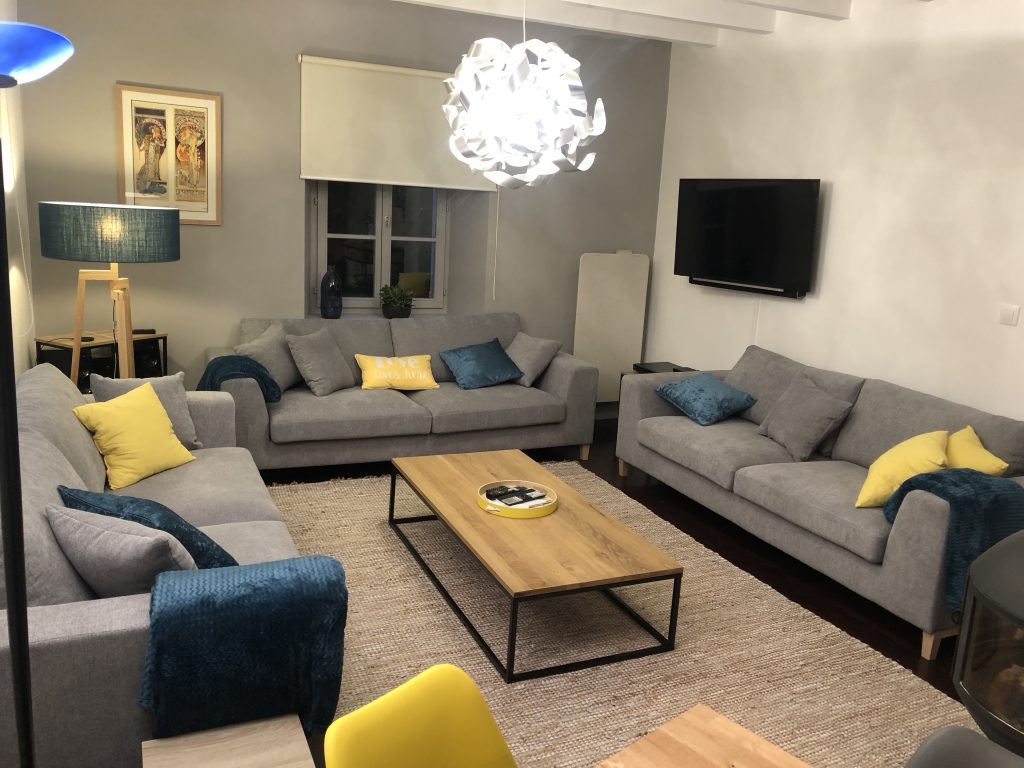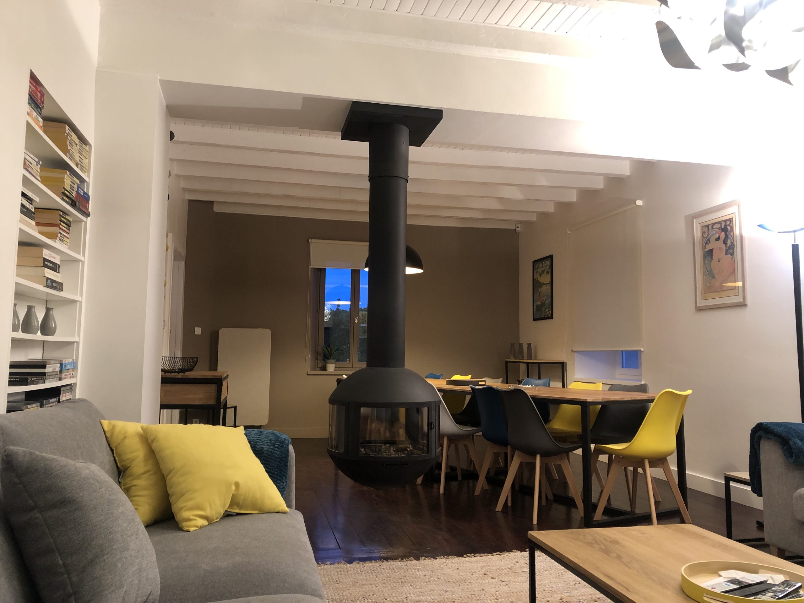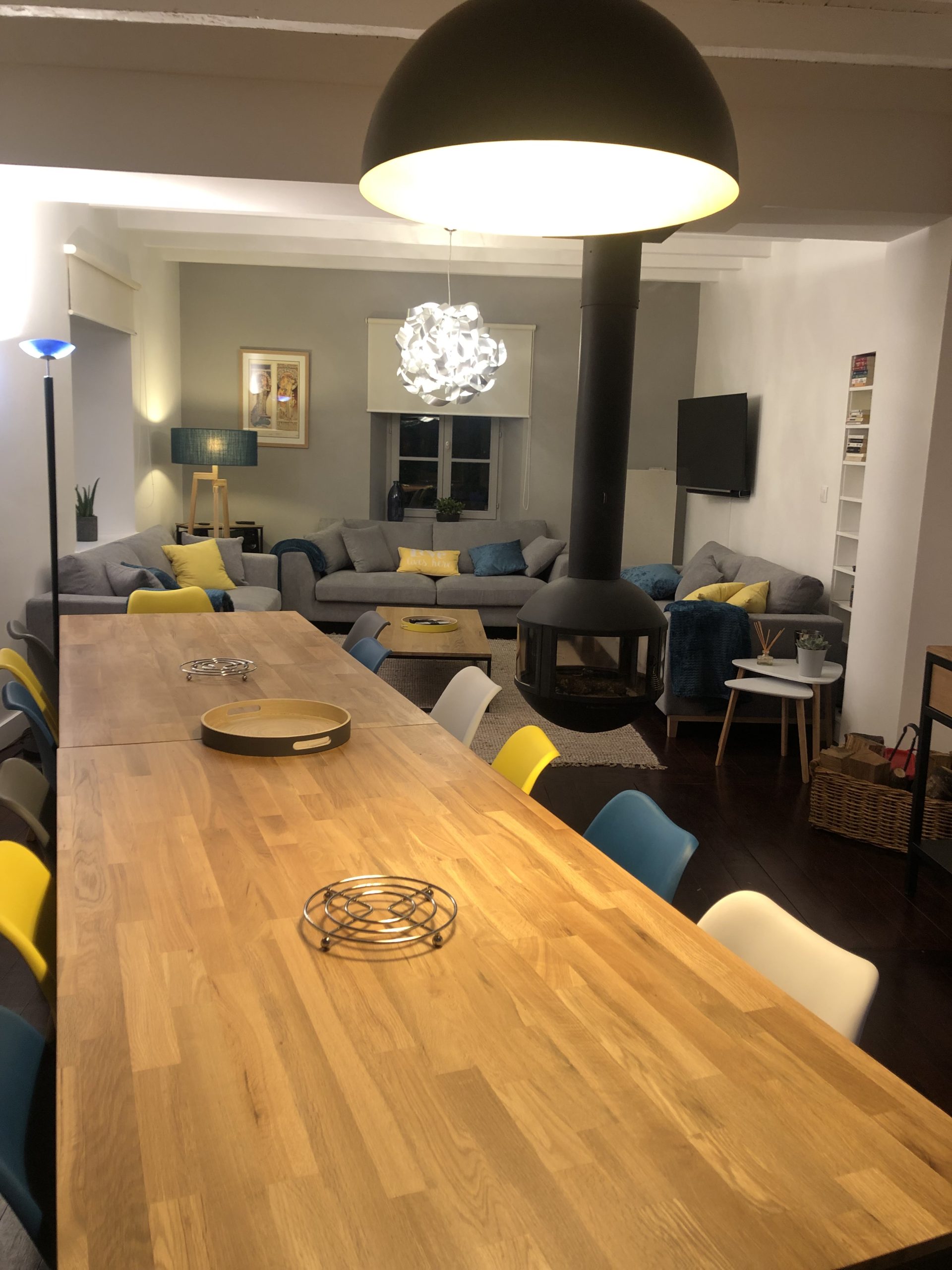 La grande pièce de vie est très agréable avec un espace salle à manger et un espace salon pourvu de trois canapés et d’une cheminée suspendue pour profiter des soirées d’hiver au coin du feu. Équipement TV et Hifi disponibles.
